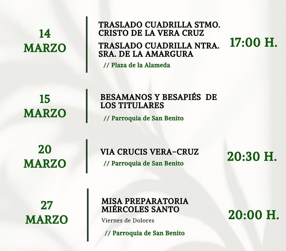 Os animamos a participar activamente en cada una de estas convocatorias, momentos de encuentro, fe y convivencia que fortalecen nuestros lazos como comunidad cristiana y cofrade.